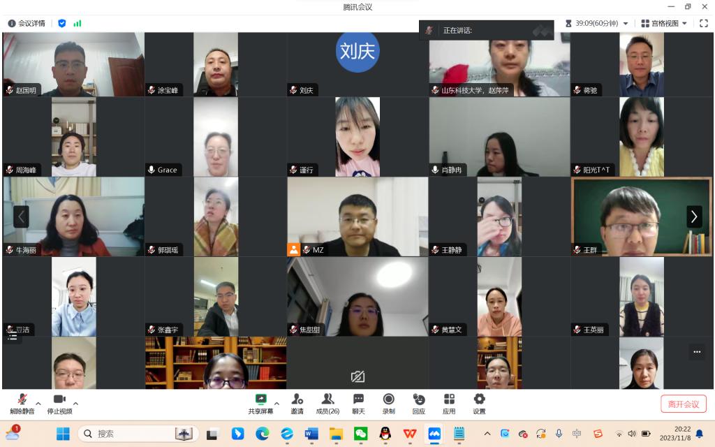 11月8日,必赢3003no1线路检测中心化工系在线上组织召开期中教学检查工作会议。会议由系主任徐冬梅主持,徐冬梅老师传达了关于期中教学检查的相关事宜,肖静冉老师讲解了《山东科技大学教学工作量核算暂行办法》,化工系全体教师参加会议。