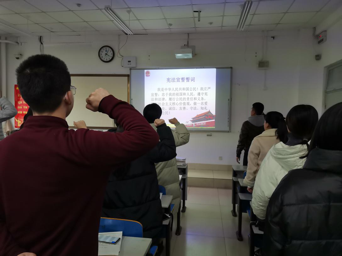 为深入开展尊崇宪法、学习宪法、维护宪法、运用宪法的教育活动,迎接全国第六个国家宪法日,12月4日,必赢3003no1线路检测中心本科学生党支部在J1-114举行“我与宪法”主题党日活动。必赢3003no1线路检测中心全体辅导员与本科生党员参加本次活动。在诸葛长华老师带领下,全体本科生党员进行宪法宣誓。通过本次主题党日活动,普及了宪法知识,强化了法律意识,使宪法意识更加深入人心,有利于推动广大学生成为社会主义法治的忠实崇尚者、自觉遵守者、坚定捍卫者。(通讯员:诸葛长华)
