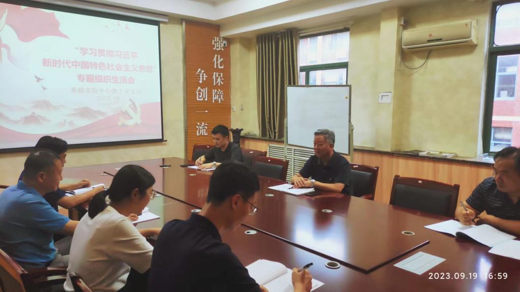 根据学校主题教育领导小组《关于开好主题教育民主生活会的通知》, 聚焦“学思想、强党性、重实践、建新功” 的总要求,按照学院党委的统一部署,经学院党委同意,9月19日,基础实验中心教工党支部召开“学习贯彻习近平新时代中国特色社会主义思想”专题组织生活会。会议由党支部书记崔科同志主持,院长吕宪俊同志对会议进行了指导和点评,支部全体党员参加了会议。