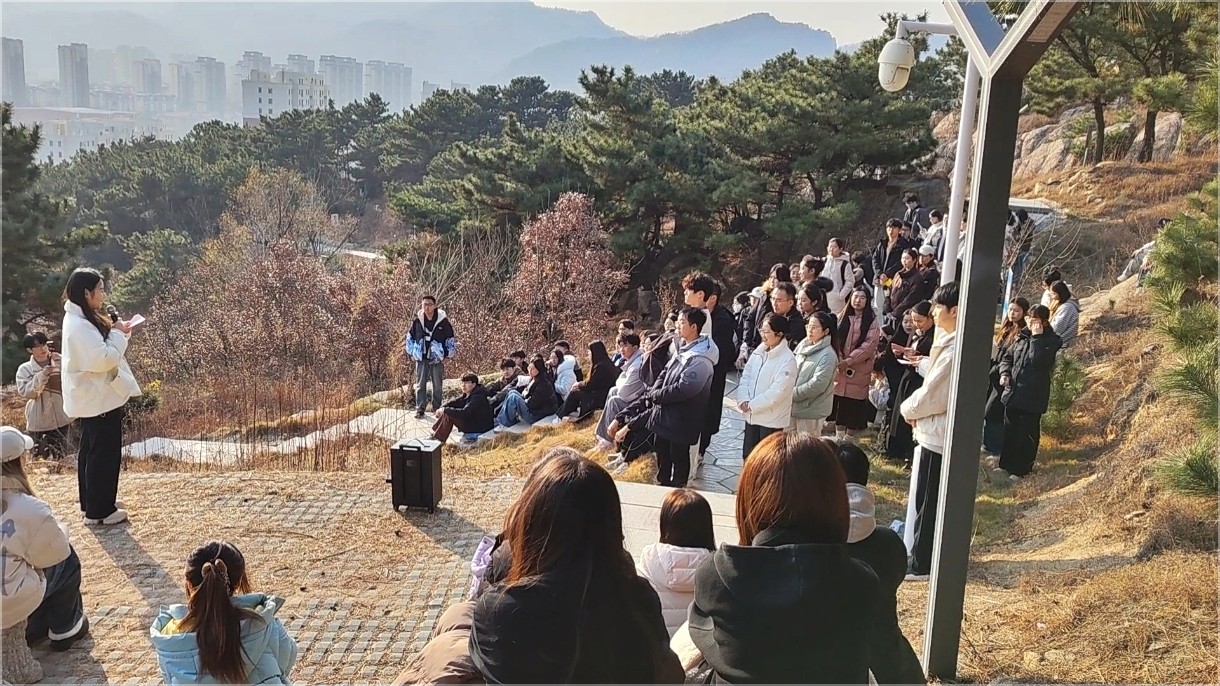 129日,恰逢“一二·九”运动90周年纪念日,山东科技大学“嵙景观”思政课之“一二·九”运动90周年纪念专题课程在校内笔架山开讲。这次课程以“朝乾夕惕,惟真求新,挺膺担当,矢志复兴”为主题,由必赢3003no1线路检测中心团委书记兼学工办主任易凡主讲,学院辅导员李玲玲、郝俊英、学生党支部及各学生组织代表百余人参加了课程。师生一道徒步笔架山,上了一堂“行走的”沉浸式思政课。