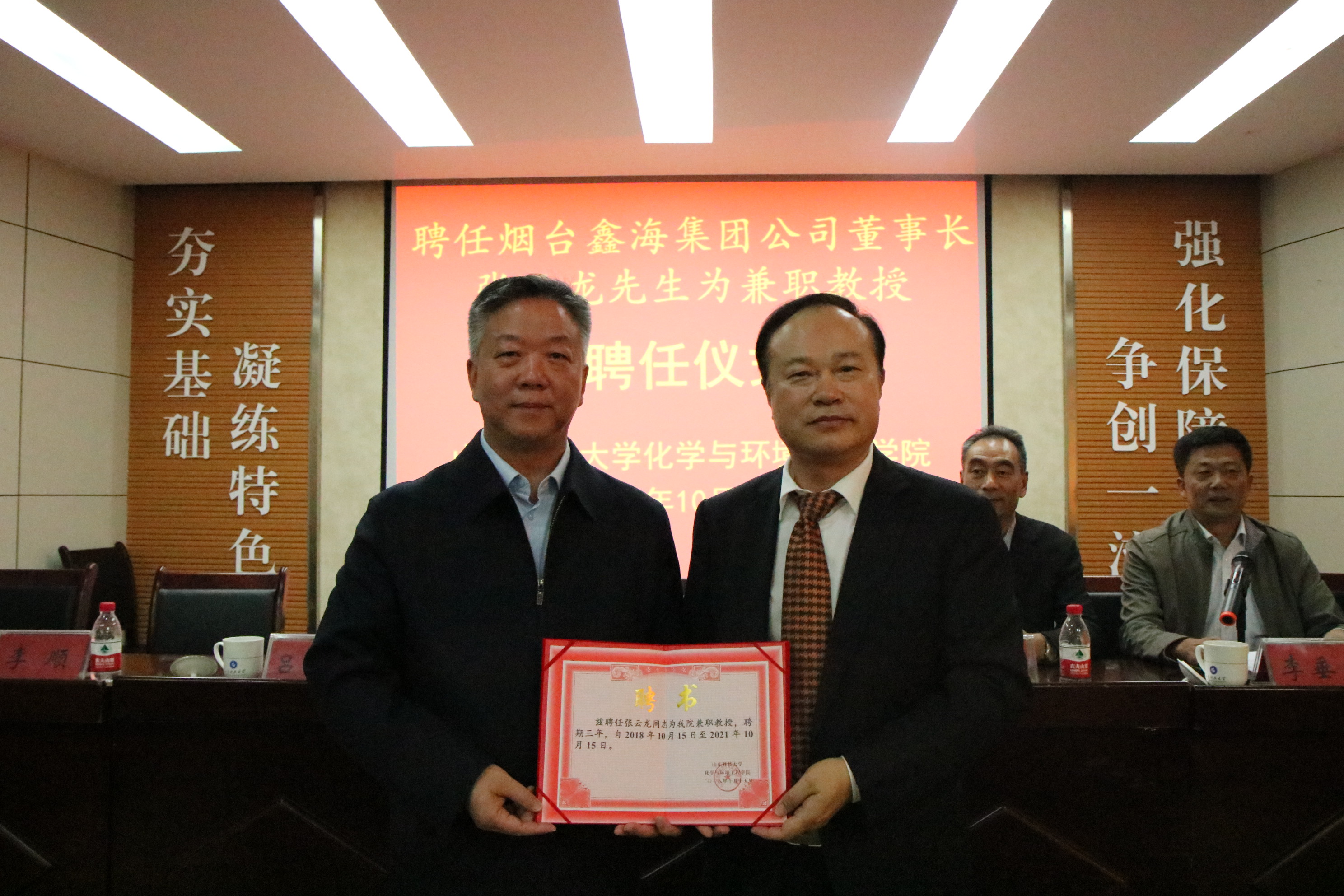 10月15日,必赢3003no1线路检测中心举行兼职教授聘任仪式,烟台鑫海集团公司董事长张云龙受聘为学院兼职教授。烟台鑫海矿业集团公司董事长张云龙、行政总监韩卿旺一行五人受邀出席聘任仪式。必赢3003no1线路检测中心党委书记李垂文,学院院长吕宪俊出席聘任仪式,学院部分师生参加了上述活动。