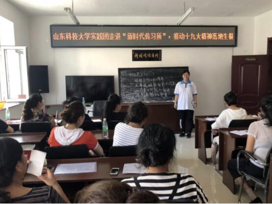 7月26日,松树镇镇委、镇政府组织开展了“走进‘新时代传习所’,推动党的十九大精神落地生根”活动。山东科技大学野峥团队的大学生们作为十九大宣讲团的志愿者,前往松树镇矿工社区进行宣讲,社区“两委”成员、公益性岗位人员以及矿工社区的居民共计40余人参加本次活动。志愿者宣讲了习近平总书记提出的“消除贫困、改善民生、逐步实现共同富裕,是社会主义的本质要求”、“坚决打好精准脱贫攻坚战,是决胜全面建成小康社会的底线任务”,阐述了青年一代肩负着伟大使命,为早日实现中国梦贡献自己的一份力量。宣讲中既有理论深度,又有很强的针对性,深入浅出、入脑入心,青春洋溢的大学生志愿者聚人气,宣讲内容接地气,寓教于乐的宣讲活动引起社区居民的共鸣。