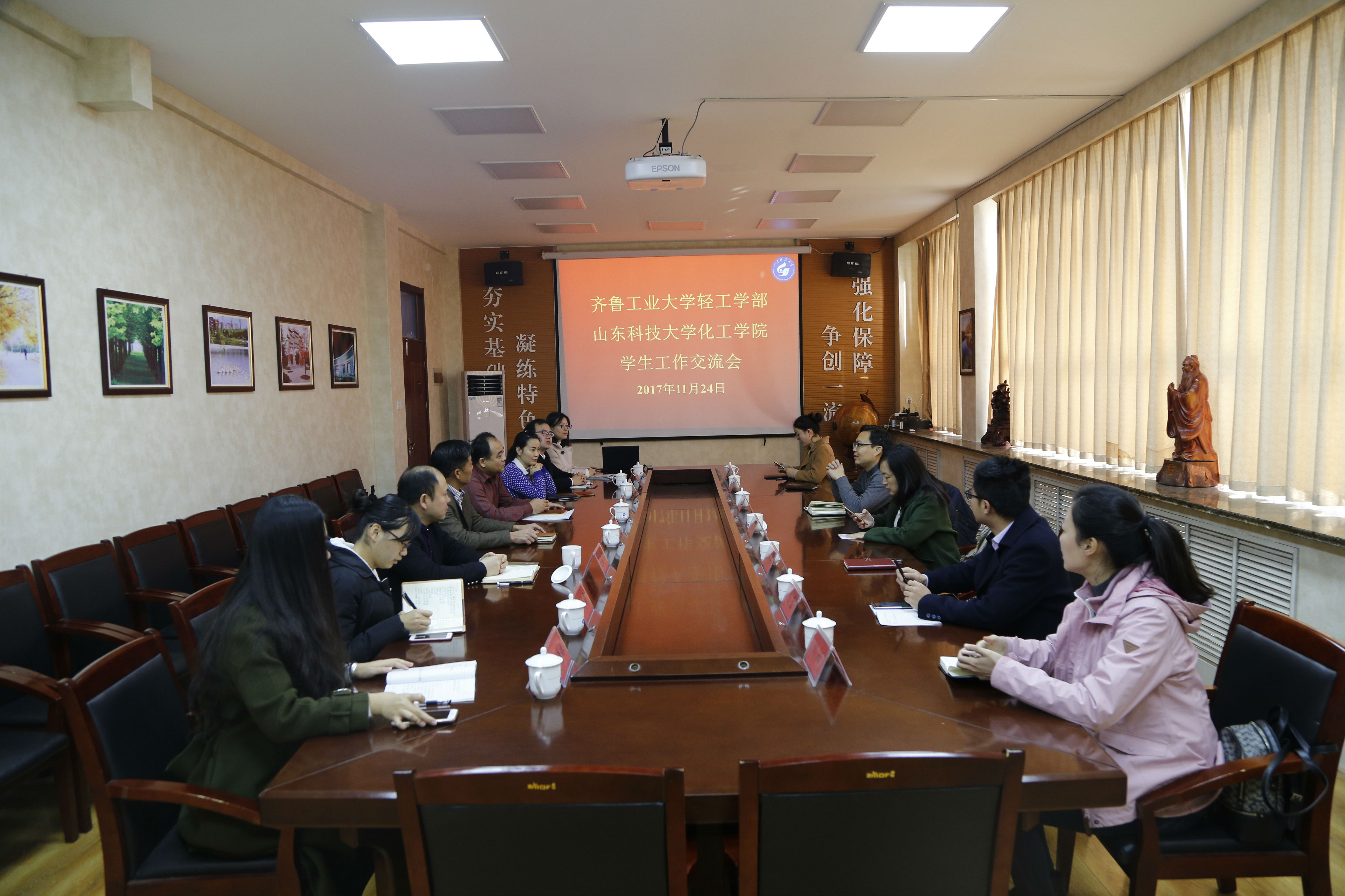11月24日上午9:00齐鲁工业大学轻工学部党委副书记熊开峰一行七人来我院考察交流工作,必赢3003no1线路检测中心党委书记李垂文、党委副书记窦存增、团委书记范俊峰以及团委辅导员老师参与接见。简单的欢迎仪式之后,在J2必赢3003no1线路检测中心会议室举行了学生工作经验交流座谈会。