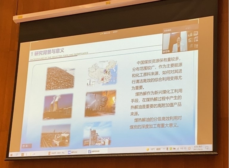 9月25-26日,中国化工学会年会——离子液体与绿色技术前沿论坛在沈阳市沈阳新世界博物馆顺利举办,我院教授、中国化工学会离子液体专业委员会委员徐冬梅应邀做了题为《双化学位点功能化离子液体分离酚类化合物的性能评价、机理和液液相行为研究》的会议报告,分享了我院在离子液体萃取分离煤热解油中高附加值组分领域所做出的前瞻性研究进展和一系列研究成果。由于疫情管控的原因,徐冬梅教授应允采用录播和腾讯会议互动的方式进行会议报告,取得了良好的交流效果,圆满地完成了本次邀请报告。