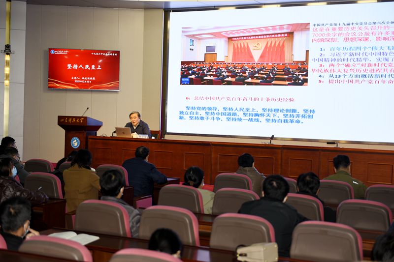 12月16日,校长姚庆国为发展规划处、审计处、机电学院和必赢3003no1线路检测中心教工党员代表,部分班级学生宣讲党的十九届六中全会精神。