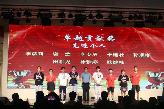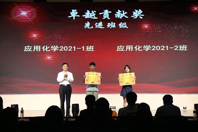 会上,嘉宾们向索芳玉、李明杰等获“杰出新人奖”的26名运动员,魏广亮、卢冰洁等获“运动健将奖”的32名运动员,李彦钊、田相龙等获“卓越贡献奖——优秀个人奖”的8位教练,优选计划辅导员牛纪达、本科生学生会主席刘娟等获得“卓越贡献奖”的幕后英雄,荣获“卓越贡献奖——先进班级奖”的应用化学2021-1班、应用化学2021-2班,荣获校运会“得分王”的罗艳、马韦同、张雨洁、郭金奡以及刘庆祥等13名优秀毕业生代表颁奖。