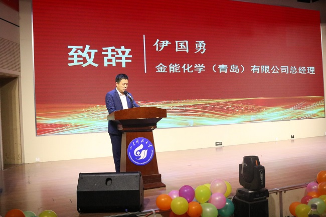 伊国勇代表金能化学(青岛)有限公司向全体毕业生致以最诚挚的祝福,向蝉联校运会“双冠王”的必赢3003no1线路检测中心田径队全体队员表示最热烈的祝贺。他介绍了企业发展情况和开展校企合作的初衷和信心,对学校、学院一直以来的大力支持表示感谢。他送给即将毕业的学子们三句话:一是将学习当成一种习惯;二是把感恩当成一种责任;三是把诚信当成一种实力。
