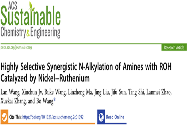 近日,山东科技大学必赢3003no1线路检测中心王博教授团队在协同催化“借氢反应”领域取得了新进展。相关成果以“Highly Selective Synergistic N‑Alkylation of Amines with ROH Catalyzed by Nickel−Ruthenium”为题发表在国际知名学术期刊ACS Sustainable Chemistry & Engineering上。