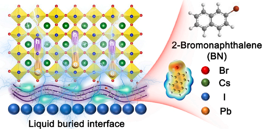 此前,课题组针对全无机钙钛矿薄膜应力问题,通过利用低沸点的有机小分子对钙钛矿薄膜埋底界面进行修饰,结合有机小分子的固液相变机制,消除钙钛矿与基底之间的热膨胀系数差异大的技术壁垒,提升了电池光伏性能和长期稳定性,相关成果以“Liquid buried interface to slide lattice and heal defects in inorganic perovskite solar cells”为题发表在Journal of Colloid And Interface Science (2023, 646, 695-702)杂志上(中科院Top一区)。