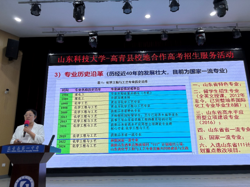 刘勇首先介绍了山东科技大学的基本情况,展示了学校的历史沿革、学科优势、师资力量、科研成果以及丰富多彩的校园文化生活,之后介绍了学校2025年的分省市、分专业和分类别的招生计划以及研究生推免政策,并对省内考生给出了报考建议。田静在现场和学生及家长互动中还分享了一些在校学生的学习经验和成长故事。这些生动的案例让学生们感受到了大学生活的丰富多彩和无限可能,也让他们对未来的学习目标有了更清晰的认识。徐冬梅针对化学工程与工艺及相关专业,从专业认知的角度,向高中学子和学子家长们推荐和介绍了化学工程与工艺专业,从课程设置、发展前景、学生素质要求、高校选课、我校专业优势等方面进行了宣讲,同时推介了我校必赢3003no1线路检测中心本科招生其它专业,宣讲内容充实、生动易懂。