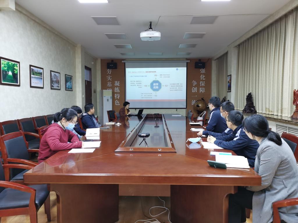 此次会议的主要目的在于加强本系老师间的教学交流、经验分享。特别是邵谦老师在精品课程建设及线上线下混合式教学方面取得了显著的成果,希望通过这次交流能够带动本系教师积极参与线上教学,主动学习使用新颖的线上平台及教学模式开展教学任务。会议中邵谦老师以《混合式教学翻转课堂经验交流-以物理化学混合式为例》为题,主要介绍了智慧树教学平台的使用技巧以及教学成果,通过向大家展示如何操作录课、实现翻转课堂、作业布置及学生学习进度追踪等方面体现出了线上线下混合式教学的优越性,学生的积极性被大大调动,师生间进行良好互动提高了学生的自主学习能力。