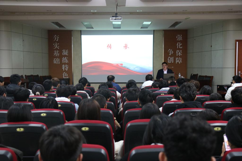 报告以《传承》为主题,刘斌围绕“勤奋、热爱、追梦、青春”四个人生关键词,结合自己在田径队训练比赛和在基层工作的经历,为学弟学妹们分享了自己的人生感悟,并提出宝贵的成长建议。在校期间,热爱跑步的他加入了化工田径队并担任田径队总教练,与队员们一起日复一日地训练,从晨曦微露到万家灯火,从寒风料峭到春色满园,最终为学院捧回了第一个校运会“双冠”。投身基层工作之后,他深知自己肩负着“立党为公、执政为民”的光辉使命,常用“即担此任,不辱使命”的豪言鞭笞自己,以自己的绵薄之力为党员群众服务。源于热爱,始于坚持,不忘初心,是他成功的秘诀。他鼓励学弟学妹们树立“山科人、中国情、世界观”的理念,把自身发展置于学校发展、民族复兴、国际国内环境中去,肩负起作为山科人、作为青年人、作为中国人的使命和担当。同时,他对母校、母院长久以来对他的关心爱护表示感谢,对母校翻天覆地的变化感到自豪,祝愿母校、母院蓬勃发展。