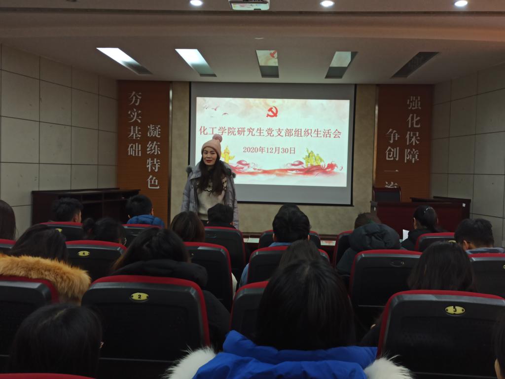 随后,党员同学逐个发言,总结自己的一年收获,分享新一年的计划蓝图,气氛非常热烈。其中,辅导员优选计划党员李淑同志谈道:“2020年,我在疫情宅家的煎熬中迎来了自己的本科毕业季,虽然没吃散伙饭没喝毕业酒是一个遗憾,但同学们都互相祝福各自奔天涯。我幸运地留在了母校,开启我忙碌但充实的辅导员+硕士生涯,对于2021我充满期待,希望咱们国家风调雨顺国泰民安,而我自己,要带好学生做好工作,更要努力学习多做科研,争取向今年一样圆满。”毕业生党员王英明俏皮地谈道:“2020年收获很多,发了论文写了专利,得了奖学金,几乎一夜暴富,2021年希望国家更加繁荣昌盛,政府更加关注民生,2021,我要做“超A小仙女”希望毕业时能找个好工作,绝不当毕业就失业的可悲女青年!”研二的党员刘帅也发言说道“2020年国家遇难克难,向前发展,我个人最大的收获是11月24日加入了中国共产党,对于2021年,我希望自己能牢记入党誓词,用行动去诠释“为人民服务”的宗旨,用努力去践行自己的入党誓词。”