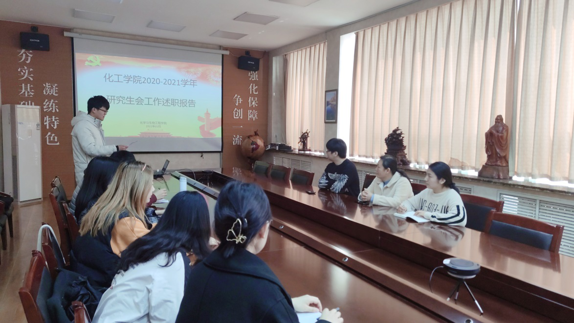 3月10日,化学与生物工程学院研究生会在J2四楼会议室召开2020-2021学年研究生会学生干部述职报告会。必赢3003no1线路检测中心团委书记易凡,辅导员老师李玲玲、王大鹏和李淑出席此次报告会,院研究生会主席、各部门部长及研究生代表参与了本次会议。