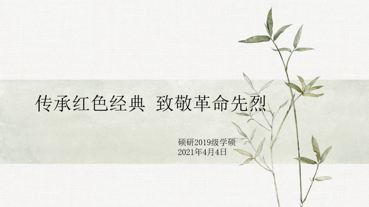 为传承红色精神,缅怀革命先烈,增强大学生的历史责任感和使命感,4月4日,硕研2019学硕团支部开展了“传承红色经典,致敬革命先烈”清明节专题云团日活动。本次活动由团支部书记王世伟主持,支部全体成员在线参与。活动伊始,团支部书记在线分享了几位革命先烈的英勇事迹,让同学们体会到了今天和平盛世的来之不易。随后,大家一同观看专题影片,学习党一百年来波澜壮阔的历史,以在线献花、发表感言的方式致敬先烈。最后,大家就当代大学生如何在日常生活中继承和发扬红色精神这一论题,畅所欲言。活动结束后,同学们纷纷表示,要铭记革命先烈的伟大功绩,珍惜当下来之不易的幸福生活,努力学习,增长才干,做社会主义事业坚定的捍卫者和建设者。