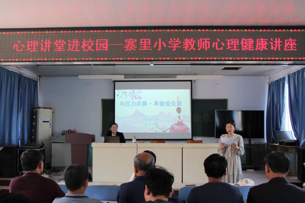 为落实“校校合作,家校共育——心理健康服务进中小学”,发挥高校服务社会的基本职能,推动我校心理育人网格化活动体系的开展,5月21日下午,在青岛市寨里小学的邀请下,我院辅导员李玲玲为寨里小学老师作“与压力共舞,享愉悦生活”心理主题讲座。