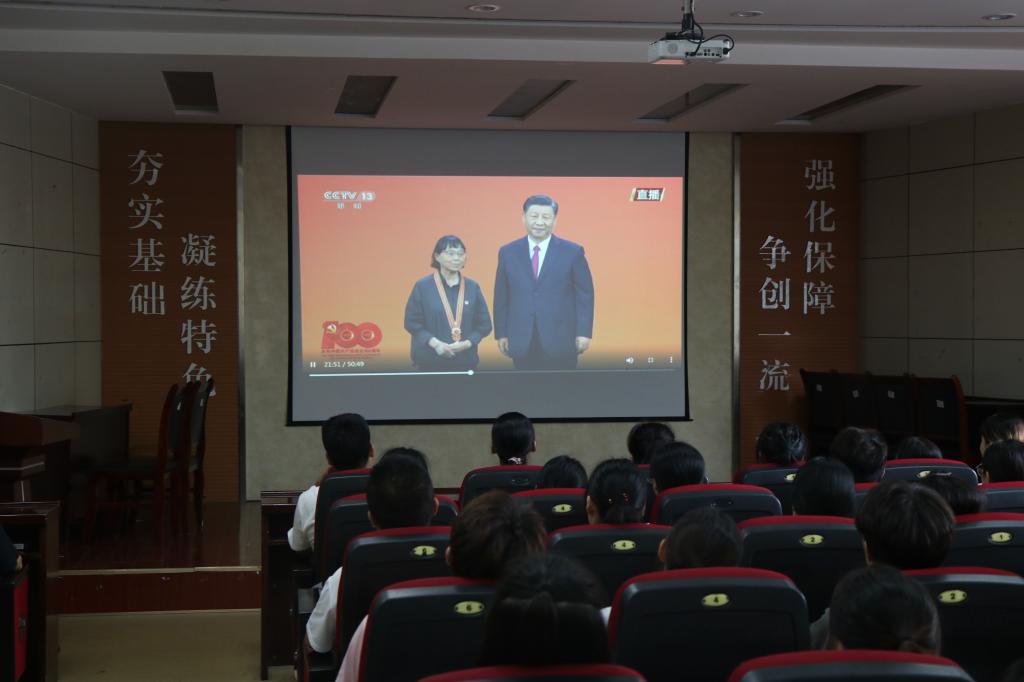 7月1日下午,必赢3003no1线路检测中心“小葵花”系列团课暨田径队“七一”特别主题团课于J2-104开讲。本次课程由团委书记易凡主持,田径队团支部全体成员到场学习。这次课程以集体观看“七一勋章”颁授仪式视频的形式呈现。大家一道观看了“七一勋章”颁授仪式视频,当看到习近平总书记为丽江市华坪县女子高级中学党支部书记、校长张桂梅老师颁授“七一勋章”时,报告厅内响起持久的掌声,全体与会人员自发起立向“七一勋章”获得者致敬。观看结束后,大家纷纷表示,内心深受洗礼,被勋章获得者们矢志向党、鞠躬尽瘁的先进事迹所感动不已。其中,田径队团员代表徐梦婷说道:“2021年是建党100周年,也是全面开启中国特色社会主义现代化建设新征程的第一年。团作为党的助手和后备军,我们团员青年更要以实现中华民族伟大复兴为己任,坚定理想信念,将青春融入党和人民事业之中,向党和国家交上一份满意的答卷。”