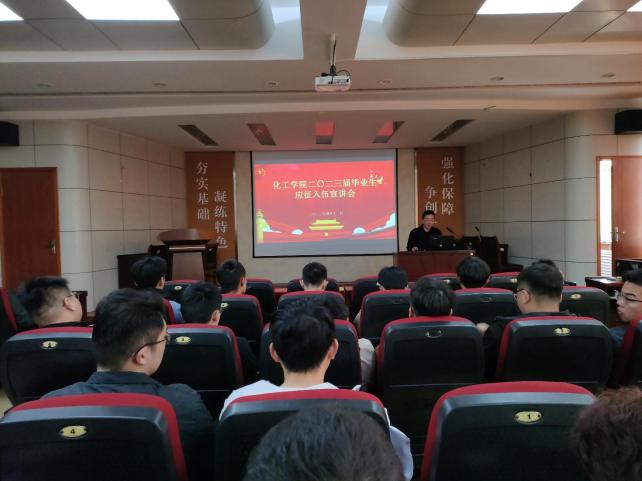 为增强学生国防安全意识,激发参军入伍热情,4月12日,必赢3003no1线路检测中心于J2报告厅举办2023届毕业生应征入伍宣讲会。会议邀请到学校武装部国防教育科主任于喆老师、2017级退役学长退役复学学生赵英琦担任主讲人,必赢3003no1线路检测中心辅导员满灏主持宣讲会。