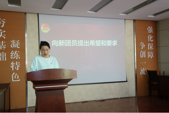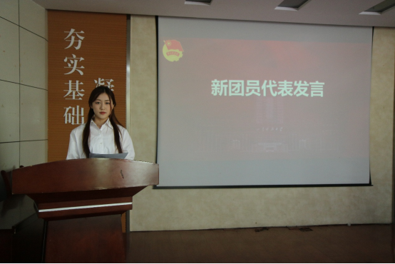 仪式在庄严的国歌声中拉开帷幕。孙梦柯首先宣读新发展团员名单,随后,易凡、满灏为新发展团员代表佩戴团徽,随后,在李子龙的领誓下,全体新团员面向团旗庄严宣誓。接着,新发展团员代表张津悦和优秀共青团员标兵王艺涵分别发言。最后,易凡在讲话中向新团员们提出殷切希望和要求,她勉励大家要积极向党组织靠拢,努力成长为有理想、敢担当、能吃苦、肯奋斗的新时代好青年。