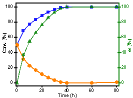 总之,该单酶去消旋化反应体系中,设计和合成了一种高效的Ni-NPs催化剂,在与ω-TA转氨条件结合的情况下,高效将系列为外消旋胺进行去消旋化反应,得到了系列高光学纯度的单一手性胺异构体。与传统的酶催化的去消旋化反应比较具有很大的低成本优势及潜在的规模应用潜力。论文外审专家对该论文工作评价为独一无二(Unique)和高度重要(Highly impottant)。