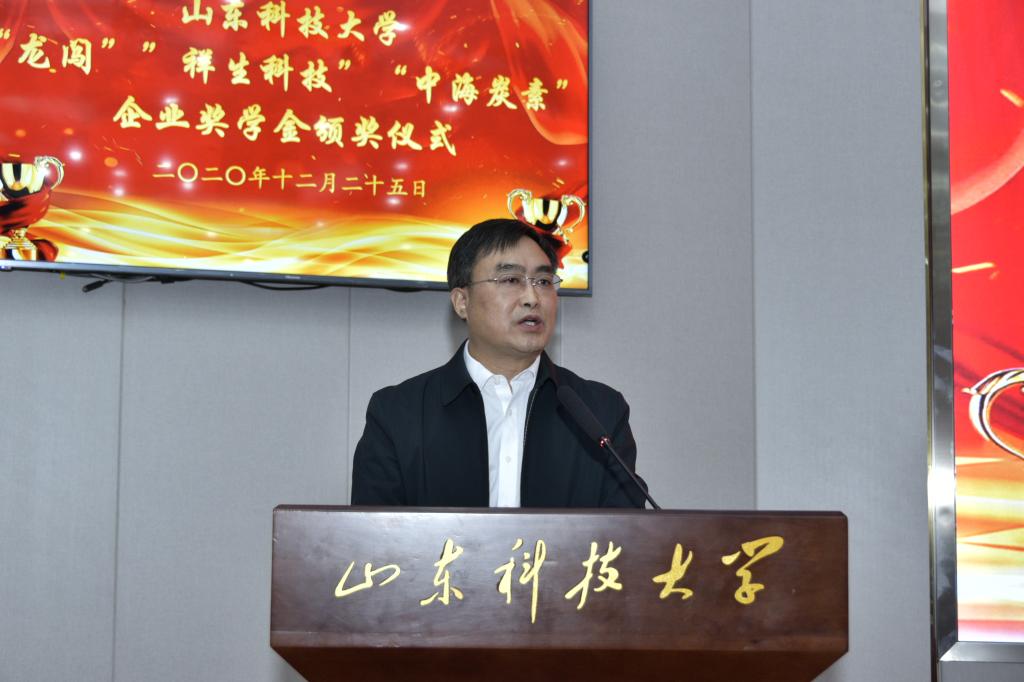 仪式上,必赢3003no1线路检测中心党委书记窦存增宣读《山东科技大学化学与生物工程学院关于颁发2020年度“龙闯”奖学金、“祥生科技”奖学金、“中海碳素”奖学金的决定》,共60名学生获得奖学金,与会领导嘉宾为获奖学生颁发了奖学金。